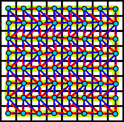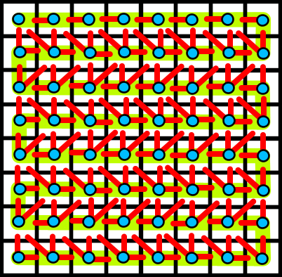 ![]() Red lines from a cell connect it to up to three neighbours. Combining the last two diagrams by superposition yields: