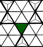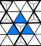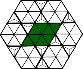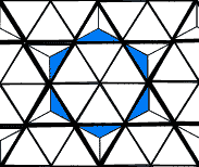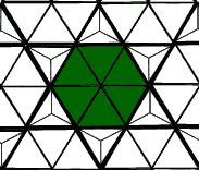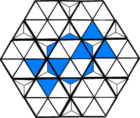 This isometric neighbourhood is composed of two simultaneously-applied "stellated" maps. The two maps are shown in "Part 1" and "Part 2" diagrams (above). In the larger diagrams at the bottom, an attmpt to indicate how the pattern tesselates is made. Two triangular mappings occur for each hexagonal mapping. Note that the diagram at the bottom could be misinterpreted - it is a composite of three distinct domains and co-domains. You could apply them tochether as a single map - but then the maximum distance from points in the domain to points in the co-domian becomes rather large - and this is against the spirit of locality. Also then the pattern is liable to lose its twelve-fold symmetry. The smaller, simpler-looking diagrams at the top explain what is happening most clearly. The neighbourhood divides the plane into two non-interacting sub-lattices.
